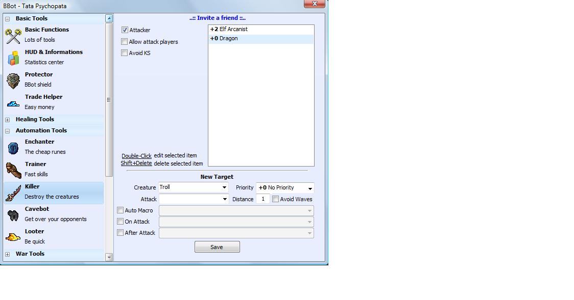 witam jestem swiezy co do bota mam problem boce na yalahar dragony wszystko ladnie pieknie ale jak przechodzi przez elfy to stoi nawet ich nie zabija tylko stoi caly czas w miejscu jak zrobic zeby przebiegal sobie na lajciku do depo