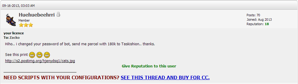 This is one post from Huehueberri.. in forum asking for help because he didnt receive his 15 days code (he just thief me 15 days for 180k)