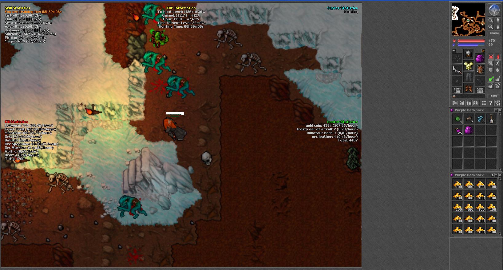 Monsters you kill: Minotaur, Rotworm, Frost Troll, Bear, Wolf, Orc, Orc Warrior, Orc Spearman, Bat